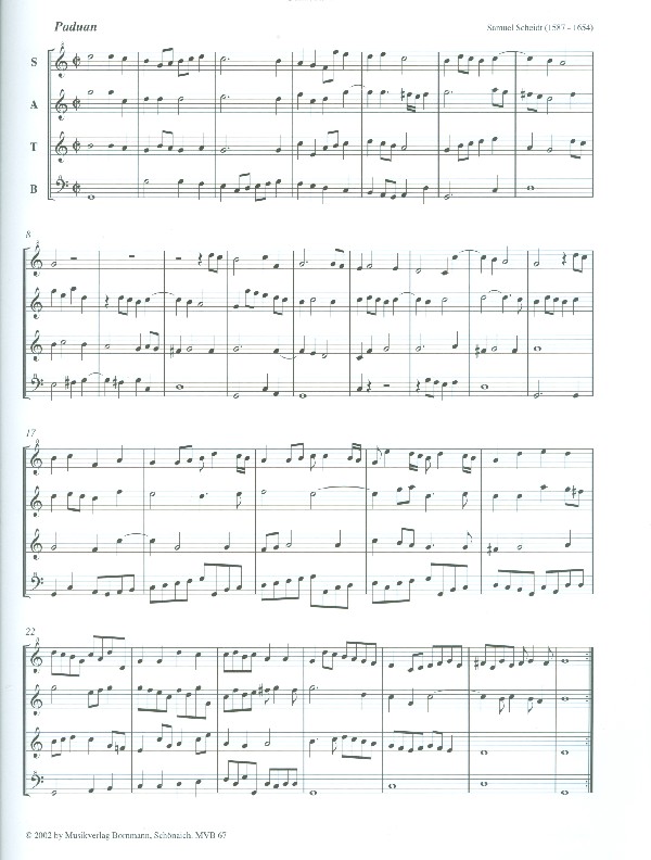 Cantus I: Paduan Cantus V: Paduan Cantus VII: Galliard Cantus IX: Courant Dolorosa Cantus X: Courant Cantus XI: Courant Cantus XII: Courant Cantus XIII: Courant Cantus XVIII: Canzon Cornetto
