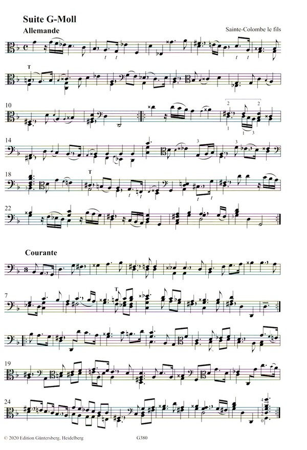 Zadow, Günter von, ed Zadow, Leonore von, ed Tombeau pour Mr de Sainte-Colombe le père und die fünf Suiten Die fünf Suiten und vor allem das Tombeau für den berühmten Vater, die in der Durham Cathedral Library überliefert sind, gehören zu den wichtigsten Kompositionen für Viola da Gamba solo des beginnenden 18. Jahrhunderts. Die Anforderungen sind recht unterschiedlich und reichen von Stücken, die gut von Laien bewältigt werden können bis hin zu Aufgaben für professionelle Spieler.