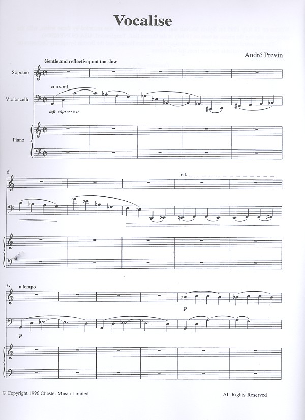 Vocalise for soprano, cello and piano
