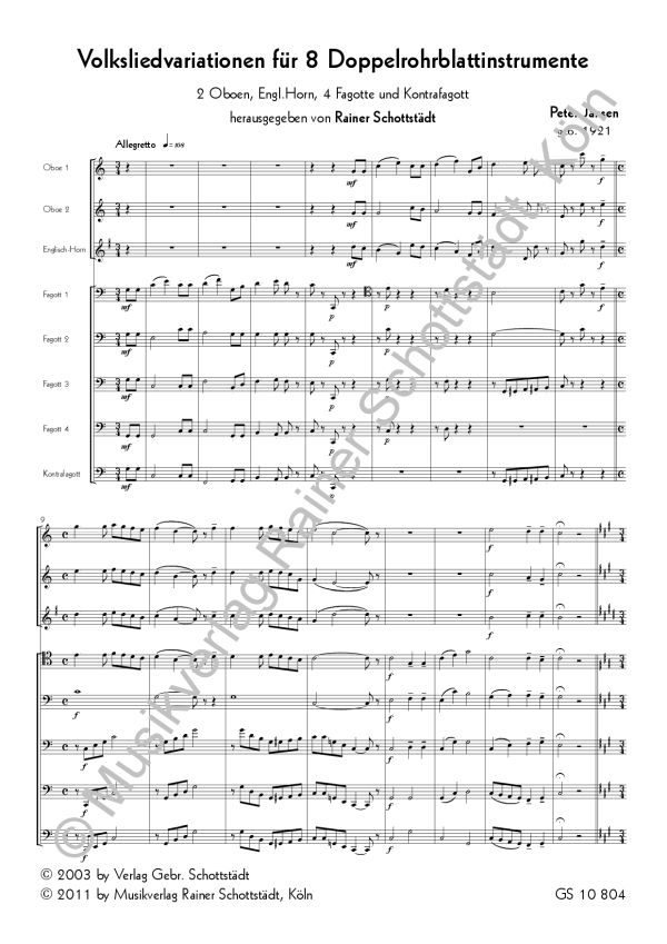 Volksliedvariationen für 8 Doppelrohrblattinstrumente, hrsg. R.Schottstädt