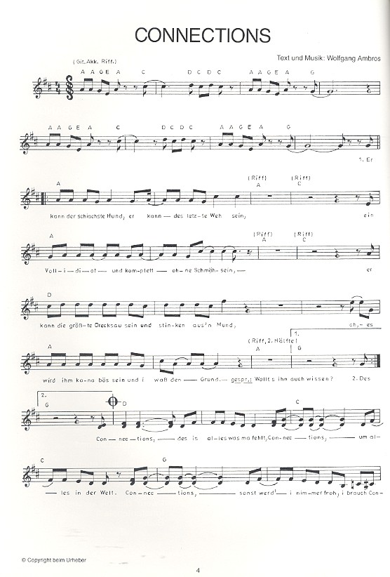 Connections Langsam woch's ma z'amm Eibischzuckerl A wilder Bua Schwesternlied Alarm Familie Pingitzer Lebendes Relikt Mama Guten Morgen Polizist I wü frei sein Belize Endlich amoi Geplante Zukunft Wia a Adler Einsicht '84 Du verstehst mi ned Guerilla Der Sinn des Lebens Ohne jede Warnung Des Sängers Flucht I selber I werd' des nie versteh'n Ignorantenstadl Bettina