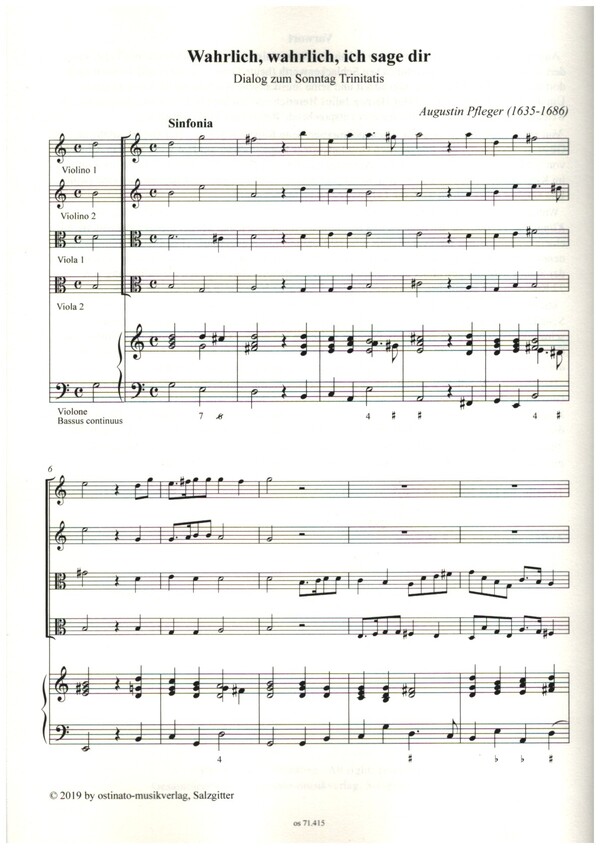 | Untertitel: | für 4 Stimmen (SSTB), 2 Violinen, 2 Violen und Bc Partitur (Bc ausgesetzt) |