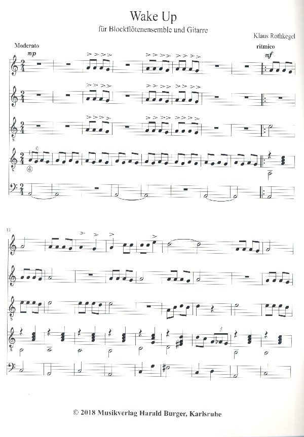 | Untertitel: | für 4 Blockflöten (SATB) (Ensemble) und Gitarre Partitur und Stimmen |