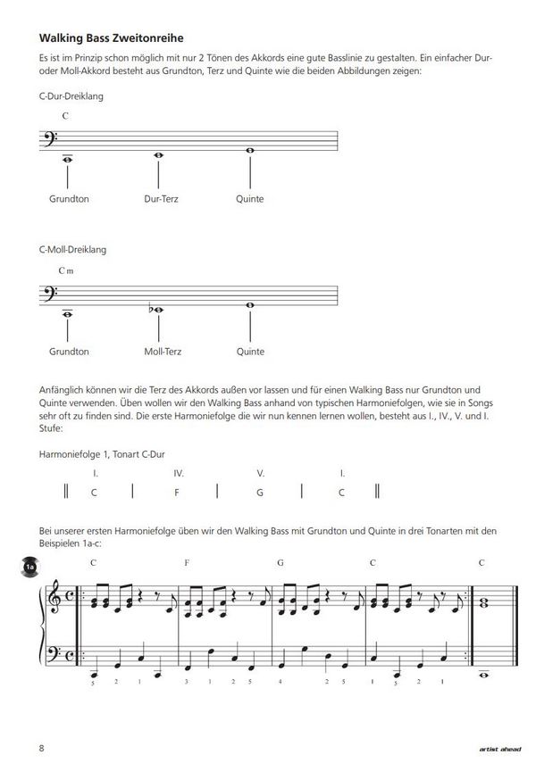 Die vorliegende Konzeption 'Walking Bass for Piano' von Michael Gundlach ist die erste ihrer Art, und möchte genau an dieser Stelle Abhilfe schaffen! Mit zahlreichen praxisnahen Übungen, vielen Beispielen und in leicht verständlicher Art und Weise geschrieben, ist dieses Lehrbuch ein 'Muss' für jeden Pianisten, der die sehr beliebte Spielweise des 'Walking Bass' lernen und kreativ umsetzen möchte.