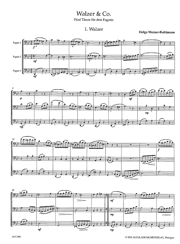| Untertitel: | für 3 Fagotte Partitur und Stimmen |