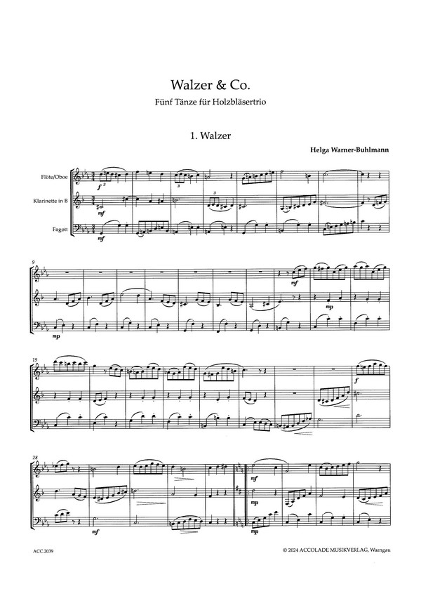 | Untertitel: | für Bläsertrio (Flöte/Oboe, Klarinette und Fagott) Partitur und Stimmen |