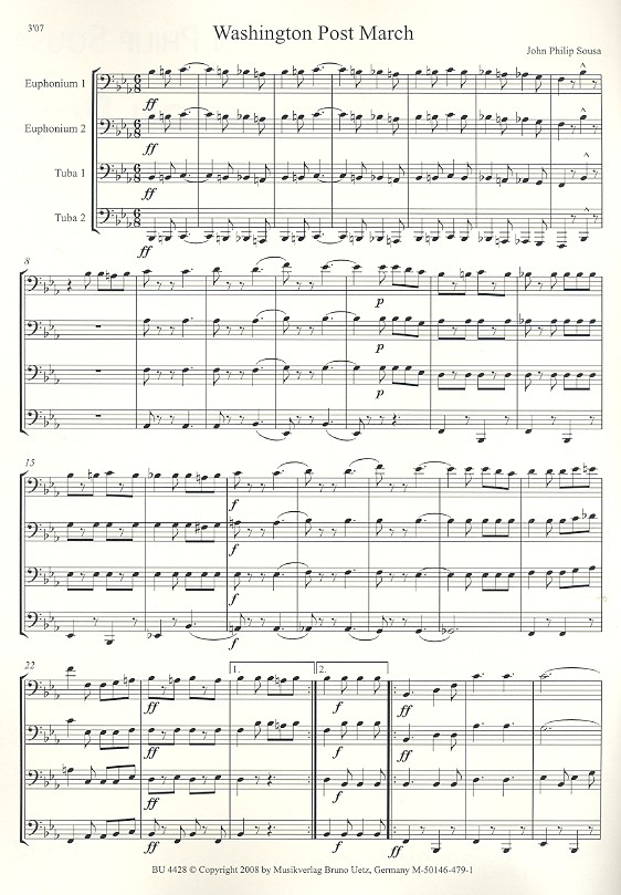 | Untertitel: | für Tubaquartett (Posauen/ Baritone/ Tenorhörner) Partitur und Stimmen |
