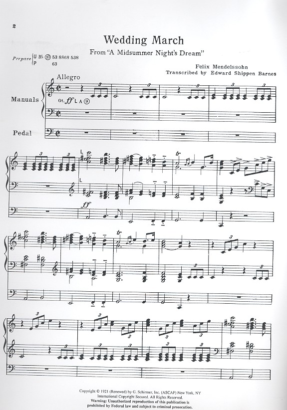 Barnes, E.E., arr. Hochzeitsmarsch Ein Sommernachtstraum