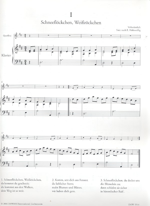 Winter, Mechthild, ed Zimmermann, Manfredo, ed Schneeflöckchen Weißröckchen Kommet ihr Hirten Es ist ein Ros' entsprungen O du fröhliche Morgen kommt der Weihnachtsmann Leise rieselt der Schnee Ihr Kinderlein kommet Vom Himmel hoch da komm ich her Kling Glöckchen klingelingeling Alle Jahre wieder Stille Nacht