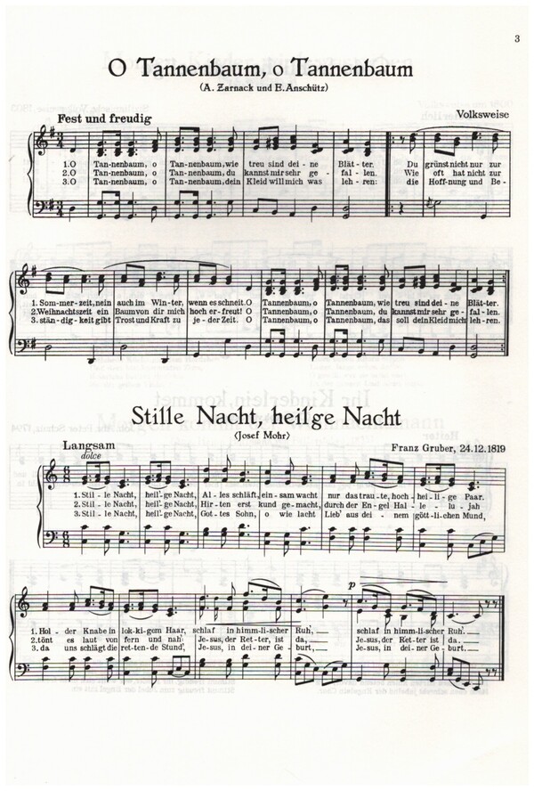 Nick, Edmund, bearb O Tannenbaum Stille Nacht O du fröhliche Ihr Kinderlein kommet Morgen Kinder wird's was geben Morgen kommt der Weihnachtsmann Alle jahre wieder Am Weihnachtsbaum die Lichter brennen Der Christbaum ist der schönste Baum Der Weihnachtstraum : ich lag und schlief Süßer die Glocken nie klingen Du lieber frommer heil'ger Christ Schlaf wohl du Himmelsknabe du Herbei o ihr Gläubigen Joseph lieber Joseph mein In dulci jubilo Kindelwiegen Vom Himmel hoch ihr Englein kommt Com Himmel hoch da komm ich her Dies ist der Tag den Gott gemacht