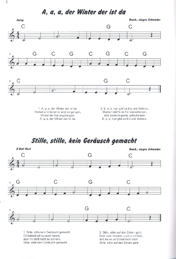 Schmieder, Jürgen arr. 15 leichte Weihnachtslieder A a a der Winter der ist da Stille stille kein Geräusch gemacht Jingle Bells Morgen kommt der Weihnachtsmann Ihr Kinderlein kommet Alle Jahre wieder Lasst uns froh und munter sein Schneeflöckchen Weißröckchen O du fröhliche Leise rieselt der Schnee Fröhliche Weihnachts überall Süßer die Glocken nie klingen Kling Glöckchen klingelingeling Engel lassen laut erschallen Stille Nacht