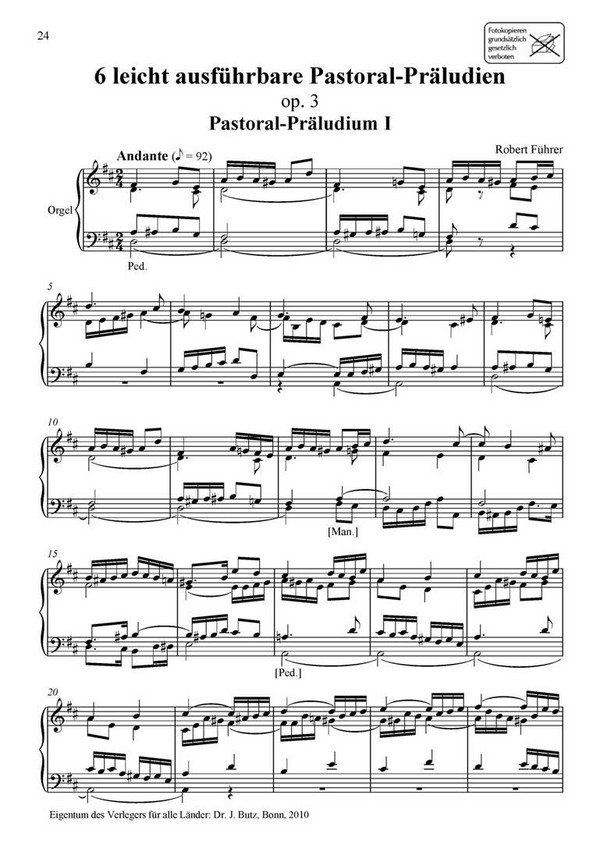 24 Pastoral-Orgelstücke Hirtenklänge - 6 Pastoral-Präludien 6 Pastoral-Präludien Band 2 6 leicht ausführbare Pastoral-Präludien op.3 Präludium für die Adventszeit G-Dur Präludium für die Adventszeit C-Dur Präludium für die Heilige Christnacht G-Dur Präludium für die Heilige Christnacht C-Dur Präludium zum Hochamt am Hl. Christfest C-Dur Präludium zum Hochamt am Hl. Christfest D-Dur