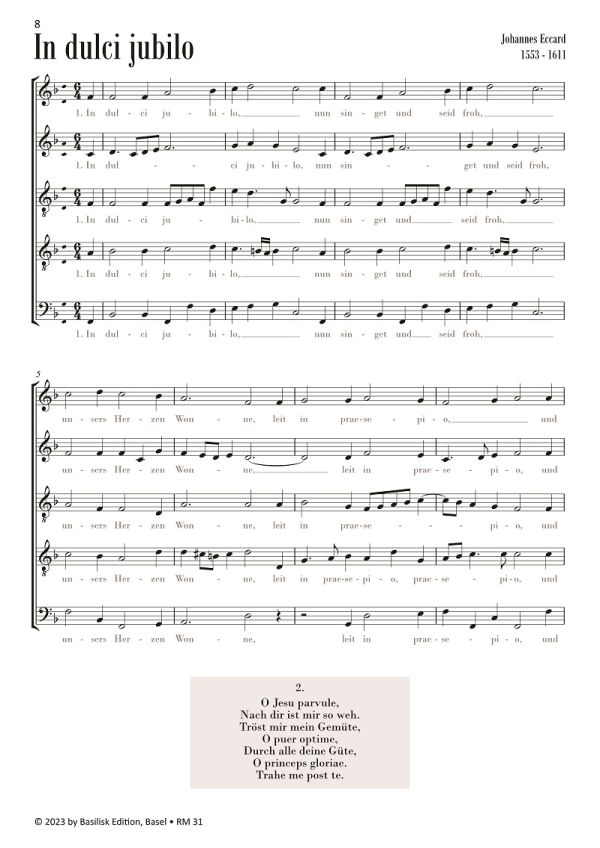 Alte Musik - Early Music 5-stimmige Choralsätze des 16. & 17. Jahrhunderts Nun komm der Heiden Heiland Der Tag, der ist so freudenreich In dulci jubilo Gelobet seist du, Jesu Christ Deo dicamus gratias Ein Kind gebor'n zu Bethlehem Joseph, lieber Joseph mein