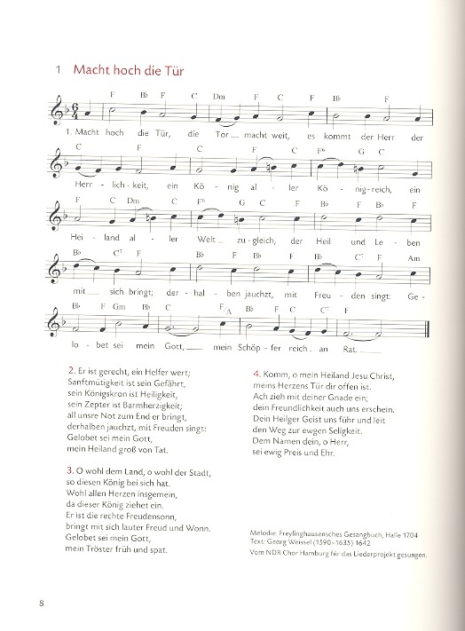 in Zusammenarbeit mit dem Verlag reclam Weigele, Klaus K., ed Brecht, Klaus, ed Walka, Frank, Illustrationen rund 80 Weihnachtslieder Macht hoch die Tür Maria durch ein Dornwald ging O Heiland, reiß die Himmel auf Lasst uns froh und munter sein Es ist ein Ros entsprungen Kling, Glöckchen, klingelingeling Was soll das bedeuten Inmitten der Nacht Zu Bethlehem geboren In dulci jubilo Als ich bei meinen Schafen wacht Kommet, ihr Hirten O Tannenbaum Süßer die Glocken nie klingen Ihr Kinderlein, kommet O du fröhliche Fröhliche Weihnacht überall O Jesulein zart Herbei, o ihr Gläub'gen Josef, lieber Josef mein Lieb Nachtigall, wach auf Es kommt ein Schiff, geladen Finster ist's in Bethlehem Und unser lieben Frauen Wer klopfet an Tauet, Himmel, den Gerechten Morgen, Kinder, wird's was geben Morgen kommt der Weihnachtsmann Andachtsjodler Es ist für uns eine Zeit angekommen Gelobet seist du, Jesu Christ O Freude über Freude Der Tag, der ist so freudenreich Vom Himmel hoch, o Engel, kommt Hört, der Engel helle Lieder Freu dich, Erd und Sternenzelt Der Heiland ist geboren Still, still, still, weil's Kindlein schlafen will Go, tell it on the mountain Erfreue dich, Himmel Es wird scho glei dumpa Den die Hirten lobeten sehre Zumba zumba Die heilgen drei König' Der Morgenstern ist aufgedrungen Am Weihnachtsbaum die Lichter brennen We wish you a merry Christmas Guten Abend in diesem Haus Von guten Mächten Ich steh an deiner Krippen hier Magnificat Es singt wohl ein Vöglein Wie soll ich dich empfangen Fröhlich soll mein Herze springen Leise rieselt der Schnee Von guten Mächten Ehre sei Gott in der Höhe Stille Nacht Tochter Zion Ubi sunt gaudia Lobt Gott, ihr Christen alle gleich Das Licht einer Kerze Dicke rote Kerze Mache dich auf und werde licht Tragt in die Welt nun ein Licht Nun komm, der Heiden Heiland Vom Himmel hoch, da komm ich her Kennst du die Namen der Engel Wie schön leuchtet der Morgenstern Wachet auf, ruft uns die Stimme Die Nacht ist vorgedrungen Jingle bells Nun sei uns willkommen, Herre Christ Wir sagen euch an den lieben Advent Sind die Lichter angezündet Brich an, du schönes Morgenlicht Alle Jahre wieder Weil Gott in tiefster Nacht erschienen Seht, die gute Zeit ist nah Stern über Bethlehem