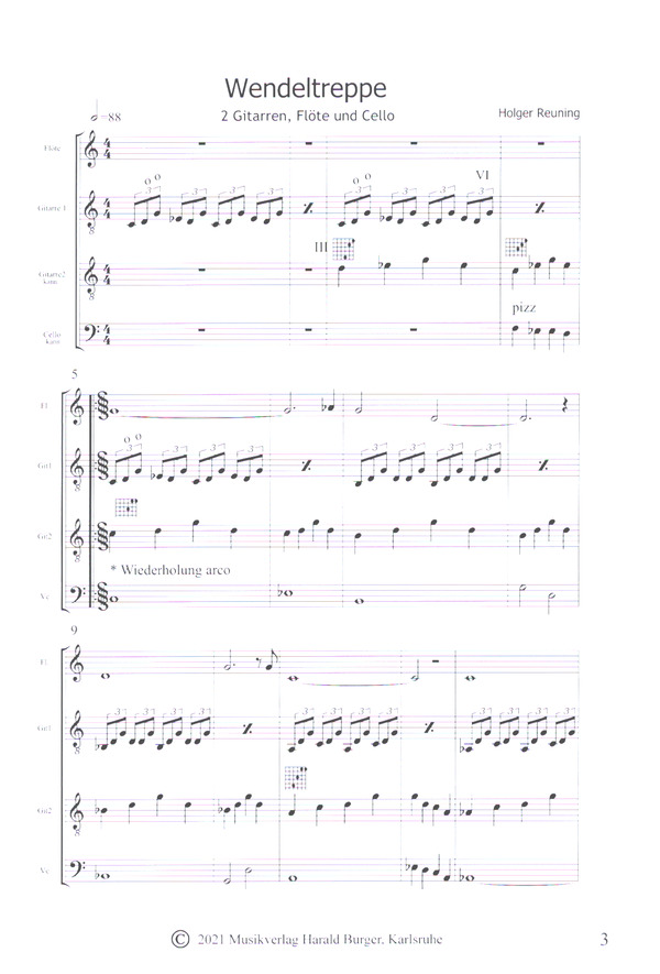 | Untertitel: | für Gitarre und Flöte (opt. 2.Gitarre und/oder Cello) Spielpartitur |
