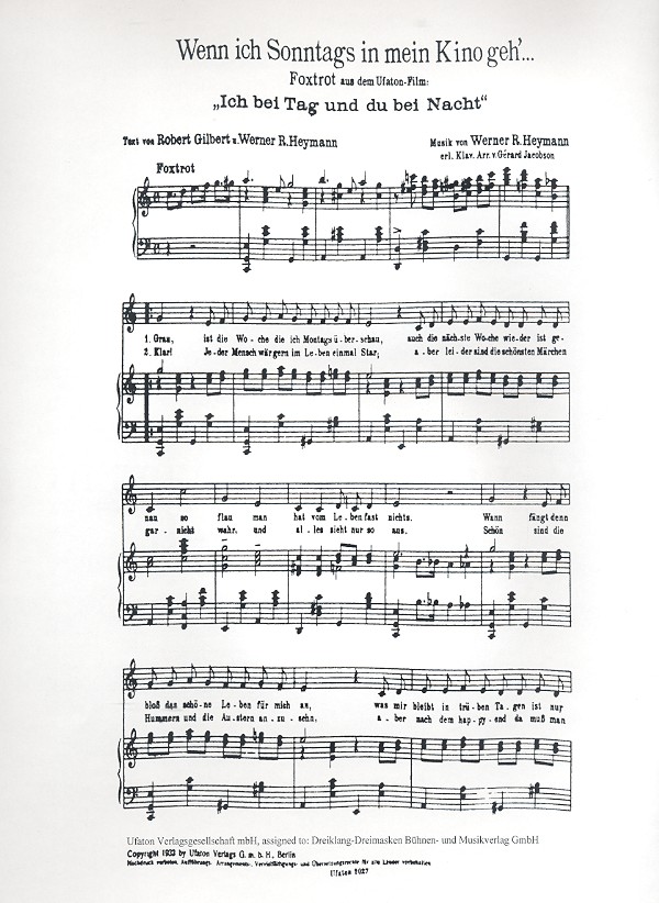Gilbert, Robert, text Foxtrott aus dem Film Ich bei Tag und du bei Nacht Jacobson, Gerard, bearb.