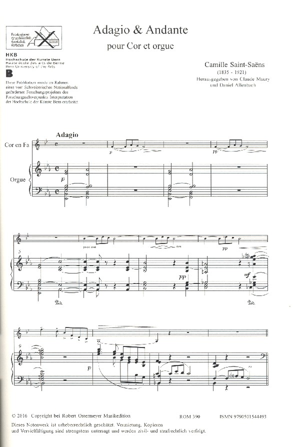 Maury, Claude, ed Adagio et Andante (Horn in F) Offertoire (chromatisches Horn in F) Ave verum (für 2 Soprane, 2 Alte, chromatisches Horn in F und Orgel) Gloria Patri (für Sopran, Alte, Horn in D und Orgel)
