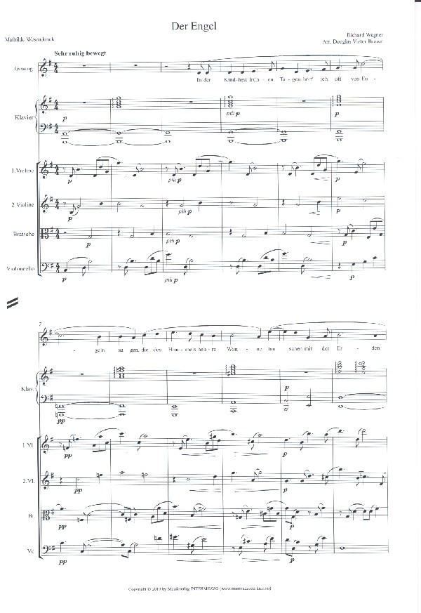 Wesendonck, Mathilde, Text Brown, Douglas Victor, arr. Der Engel Stehe still Im Treibhaus Schmerzen Träume