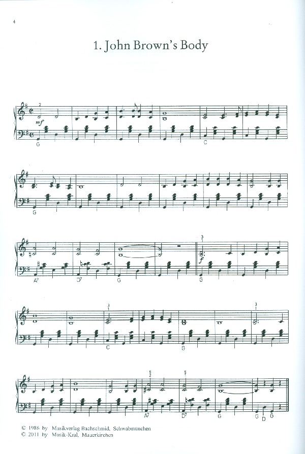 Country & Western John Brown's Body Silver Threads Carry me back In the Land of Cotton Polly Wolly Doodle Good night Ladies Old Billy's Saloon Medley Old Smoky After the Ball She'll be comin' Billy Boy Johnny comes marchin' home Gloryland My old Kentucky Home Amazing Grace Down by the Riverside