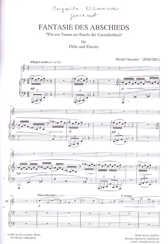 | Untertitel: | Unendlichkeit Fantasie für Flöte und Klavier (2004/2007) |