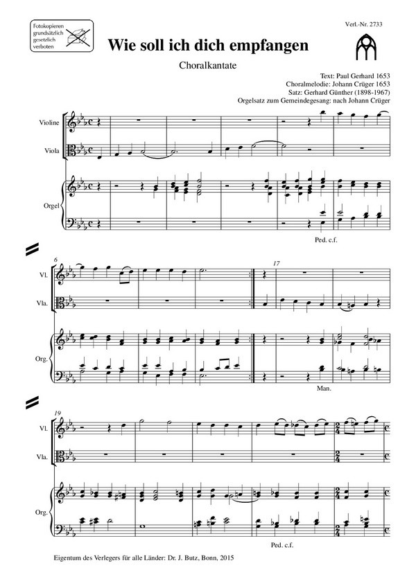 | Untertitel: | für gem Chor (SAM), Violine, Viola und Orgel Partitur |