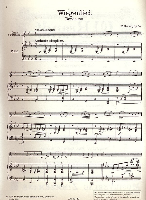 Produktinformationen "Wiegenlied op.14 für Kornett (Trompete)"