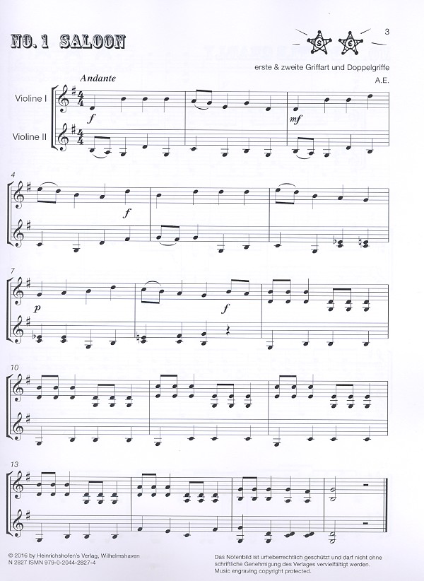 | Untertitel: | für 2 Violinen Spielpartitur |
