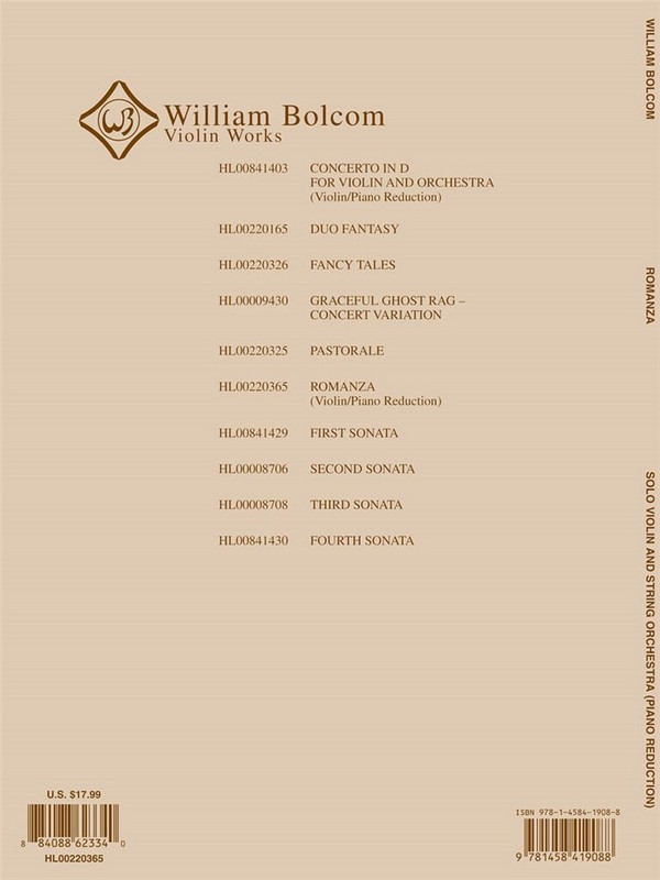 Produktinformationen "William Bolcom Romanza - Piano Reduction"