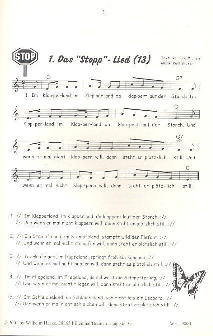 Michels, Raimund, Text Lieder Spiele Bewegungsanregungen Das Stopp-lied Herr Wang aus China Die Eisenbahn Der Häuptling ruft Jetzt kommt die schöne Frühlingszeit Der Schneider aus dem Orient Lied vom Drehen Die Bremer Stadtmusikanten Olé olé Die Arbeitsbiene Lied von den Werderfans