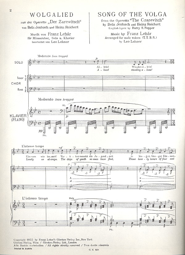 Produktinformationen "Wolgalied aus der Zarewitsch für"