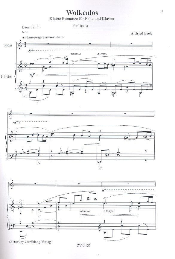 Wolkenlos für Flöte und Klavier
