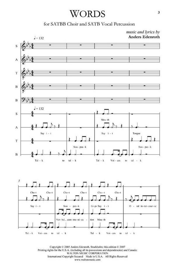 Words for mixed chorus a cappella