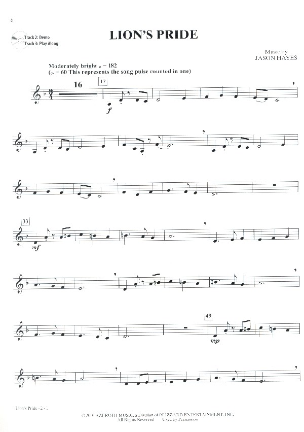 Instrumental Playalong Lion's Ride The Shaping of the World Pig and Whistle Slaughtered Lamb Invincible A Call to Arms Gates of the black Temple Salty Sailor Wrath of the Lich King Garden of Life