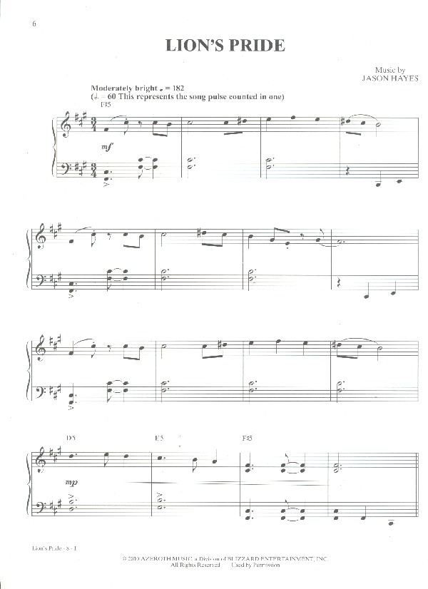 Instrumental Playalong Lion's Ride The Shaping of the World Pig and Whistle Slaughtered Lamb Invincible A Call to Arms Gates of the black Temple Salty Sailor Wrath of the Lich King Garden of Life