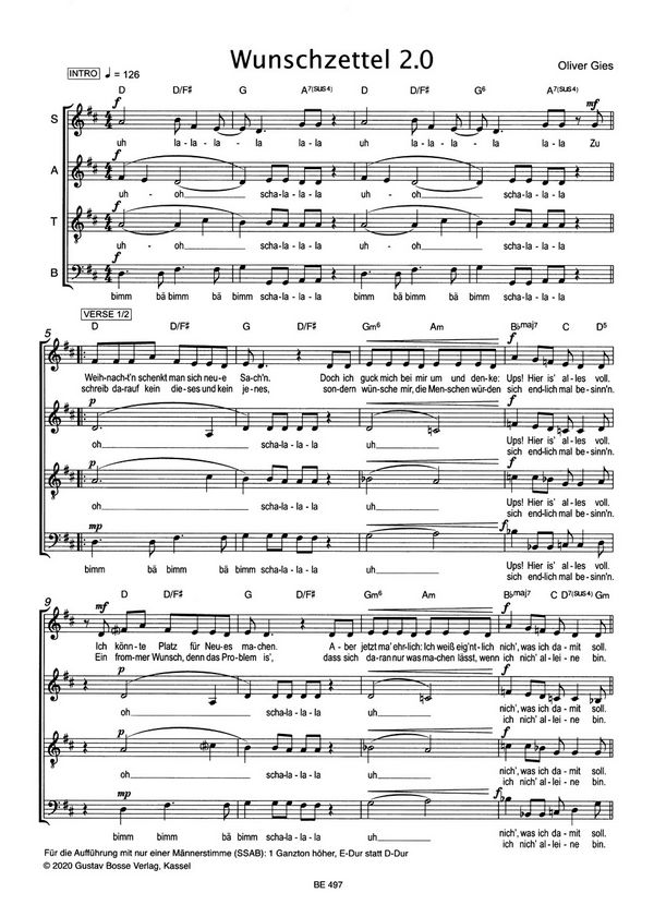 Gies, Oliver, arr. Wunschzettel 2.0 Frau Weihnachtsmann Weihnachts-Blues Der Glühweinstand von Buxtehude Stille Nacht Umtauschen Weiße Weihnacht Als ich bei meinen Schafen wacht'