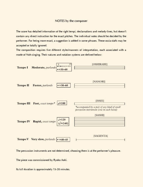 | Untertitel: | for Noh-singer with percussion (2019-2020) |