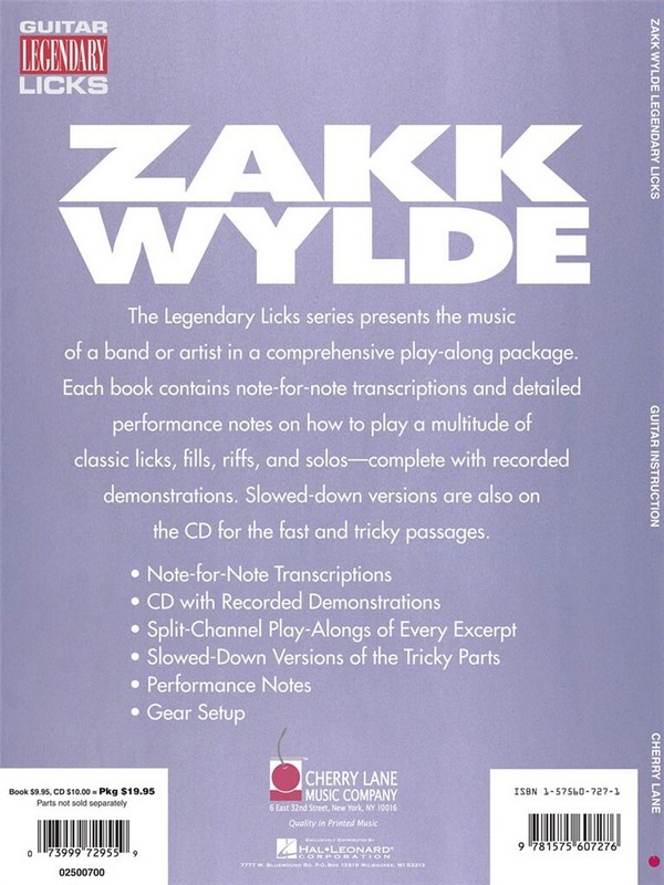 Zakk Wylde Legendary Guitar Licks (+CD):