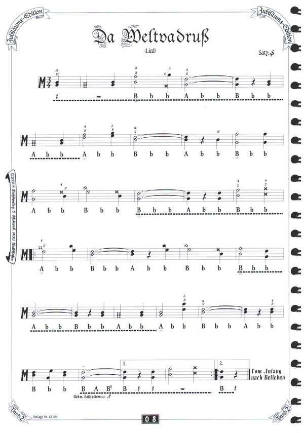 Schaborak, Dieter, arr. Marienfrieder Gänshalter-Gingei Da Weltvadruss Boarischer Da Weg zu mein Diandl Da Hintatupfa-Bene Andorfer-Helfersdorfer Hausfrauen-Polka Loblied De Pirsch 's Luada Haxnreißer-Boarischer Das König Ludwig-Lied Polka francaise Eiswalzer Eisschützen-Polka Wildsau D' Nachtigall Maitanz-(Offener-) Walzer Vierasechzga-Schottisch Amalien-Polka Okarina-Landler Almerischer Landler Lisei-Polka Die alte Lena Lauter Tiafe Feieromd-Landler