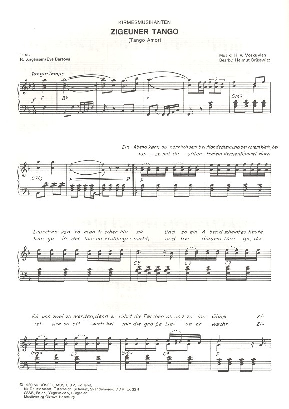 Zigeunertango Tango Amor Brüsewitz, Helmut, bearb. Voskyulen h., v., Musik Ein Abend kann so herrlich... Magic Trumpet Kämpfert, Bert, Musik