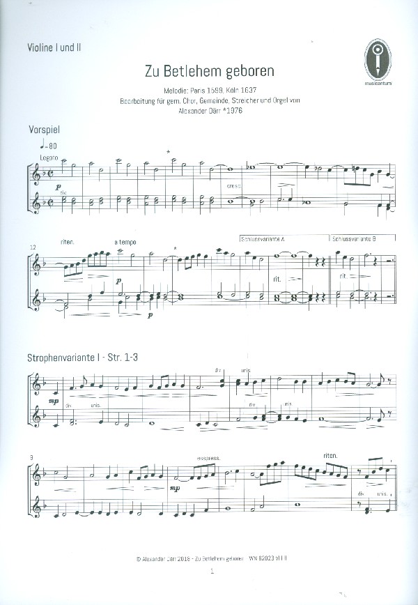 | Untertitel: | für gem Chor (SAM/SATB), Gemeinde, Streicher und Orgel Spielpartitur Violine 1/2 |