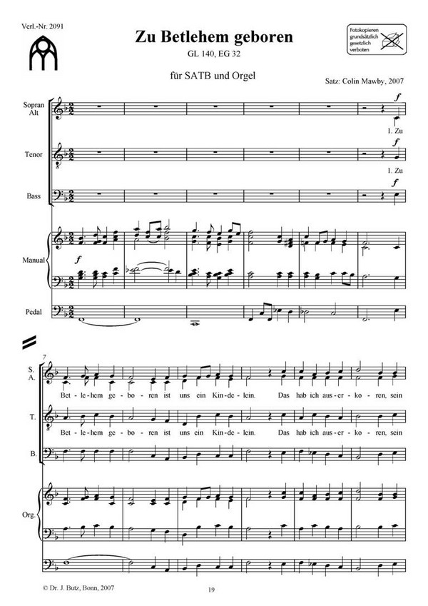 | Untertitel: | für gem Chor und Orgel Partitur |