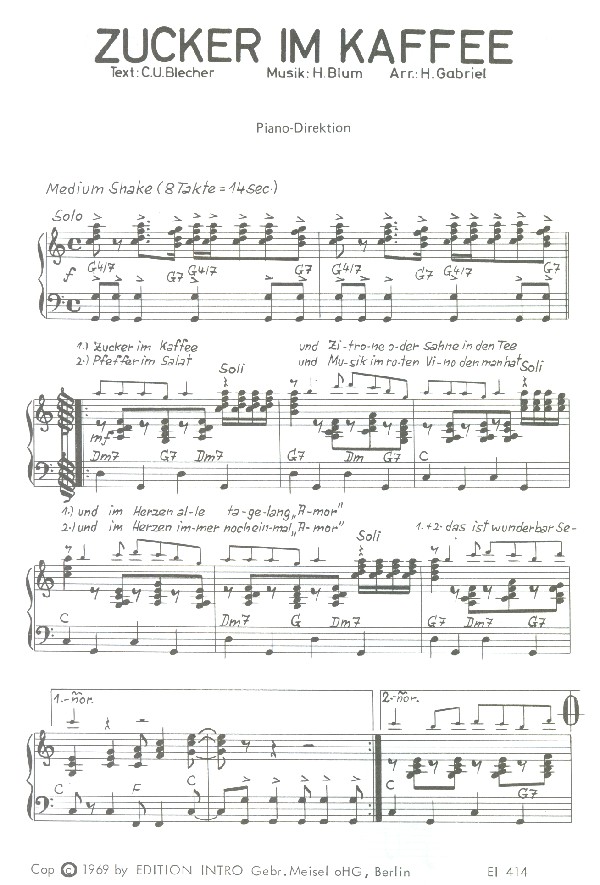 Blecher, C.U., Text Gabriel, Herbert, arr. Howard, Harlan, Musik (Ich zähle...) Heartaches by the Number Nicolas, Jean, Text Gürsch, Günther, arr.
