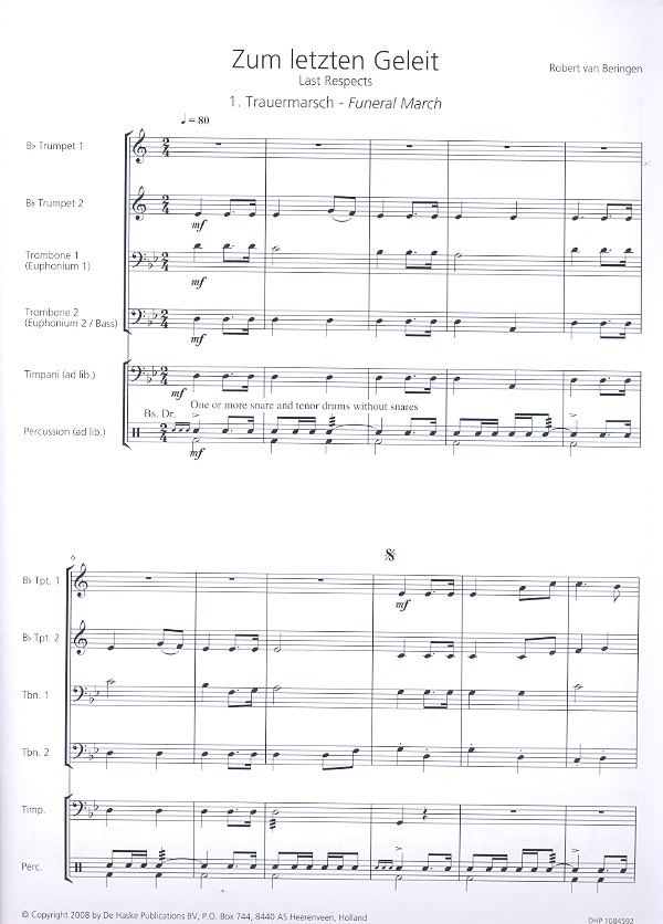 | Untertitel: | 2 Posaunen, Pauken und Perc. ad lib. Partitur und Stimmen |