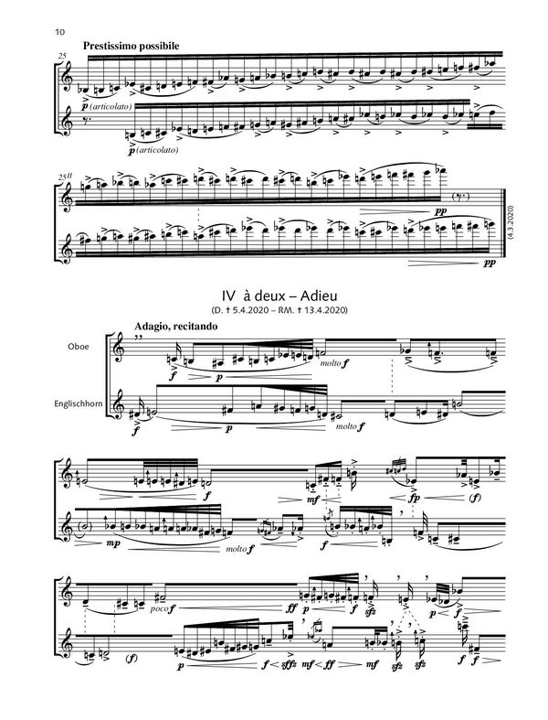 Vier Stücke für Oboe und Englischhorn I Spiegel-LIED II LIED mit Gegenüber III Fangis (fang mich) IV à deux Adieu