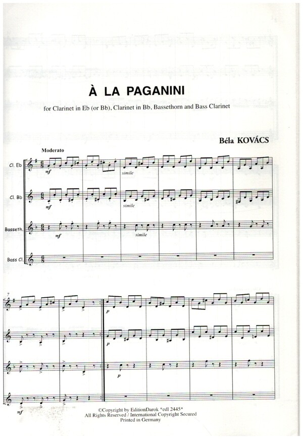 | Untertitel: | für Klarinette in Es, Klarinette in B, Bassetthorn und Bassklarinette Partitur und Stimmen |