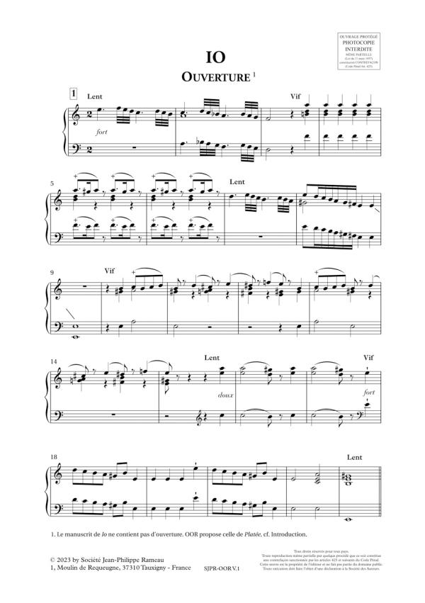 Im Opernschaffen Rameaus ist 'Io' sicher das von den meisten Geheimnissen umgebene Werk: Der Acte de ballet ist lediglich in Form einer Partitur- und Stimmenabschrift überliefert, die ein Sammler aus der Generation nach Rameau vom heute verlorenen Autograph anfertigen ließ. Die Abschrift scheint zwar, vermutlich für einen Probedurchlauf, verwendet worden zu sein, doch wurde das Werk zu Lebzeiten Rameaus offenbar nie regulär aufgeführt. Und das aus gutem Grund: Das Werk bricht am Anfang des Divertissements abrupt ab, weder der Librettist noch ein geplanter Aufführungsort sind bekannt. Aufgrund seiner Unvollständigkeit wurde Io lange Zeit als Rameaus letztes Werk betrachtet, doch deutet vieles darauf hin, dass die Komposition zwischen 1740 und 1745 entstanden sein muss. Die Einleitung zur vorliegenden Edition geht den Indizien für die Datierung sowie verschiedenen Hypothesen über Aufführungsmöglichkeiten und Librettisten nach. Die Handlung dreht sich um einen jener typischen mythologischen Flirts, die unweigerlich zu erwarten sind, wenn Jupiter und eine Nymphe, hier Io, im Spiel sind. Mit dem Auftritt des Wahnsinns, La Folia, erreicht das Werk einen dramaturgischen Höhepunkt, nach dem die Oper jedoch abbricht. Um das Stück aufführbar zu machen, schlagen die Herausgeber der Opera Omnia Rameau eine Ergänzung des Divertissements sowie einen Schluss vor, der dem Ballett-Bouffon 'Platée' in der Fassung von 1745 entliehen ist und zu 'Io' zahlreiche Parallelen aufweist. So kommen diese Hinzufügungen Rameaus Stil der 1740er Jahre so nahe wie möglich und bringen die Handlung gleichzeitig zu einem Abschluss.